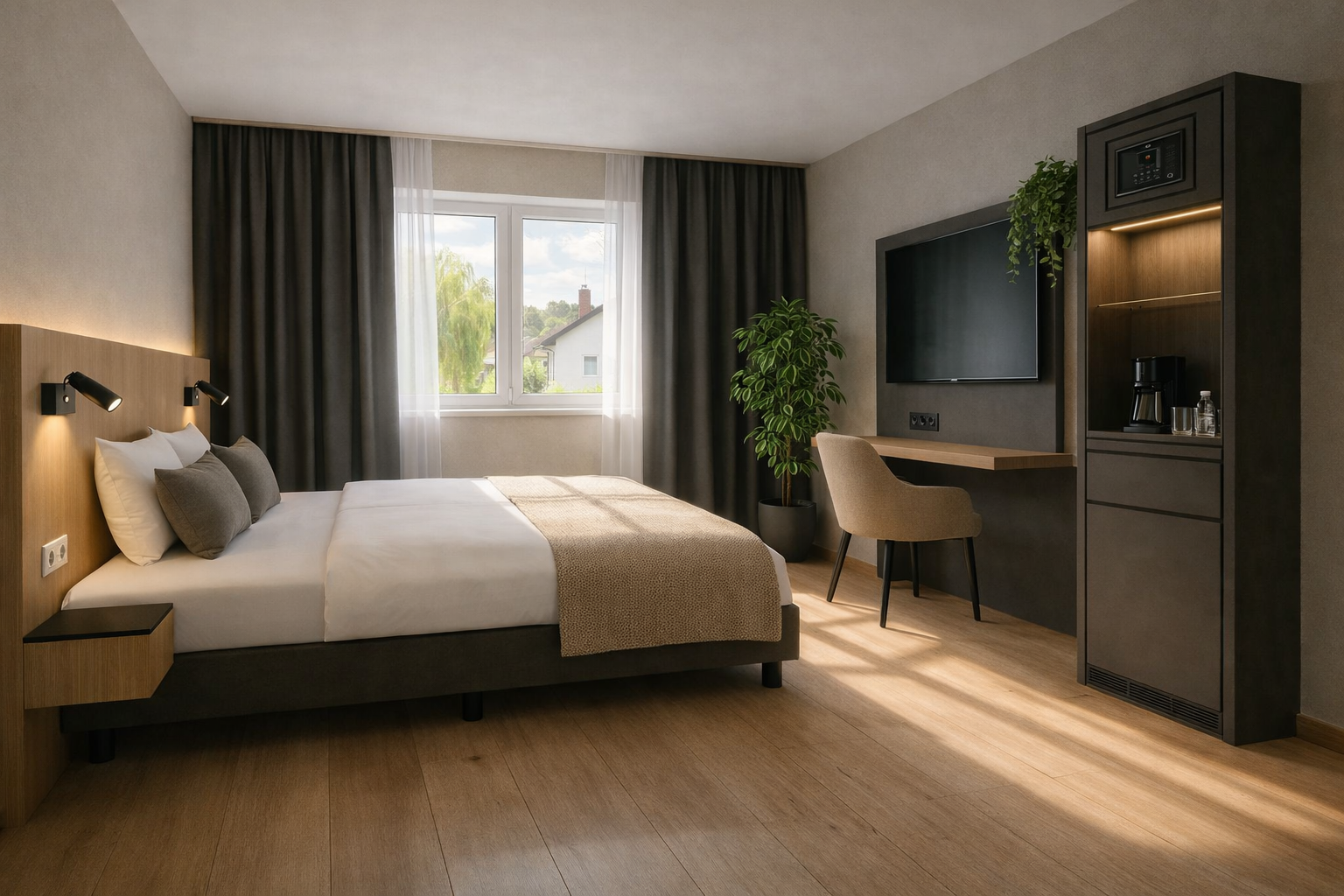 Nur wenige Minuten von Bamberg entfernt, am Windfelder See, liegt ein kleines, neu renoviertes Hotel – ruhig, überschaubar und persönlich. Ein Ausgangspunkt für alles, was diese besondere Lage ausmacht: die Weltkulturerbestadt Bamberg mit ihren Gassen und Cafés, und zugleich die weiten Landschaften des Steigerwalds mit Wanderwegen, Laufrunden und Natur direkt vor der Tür.